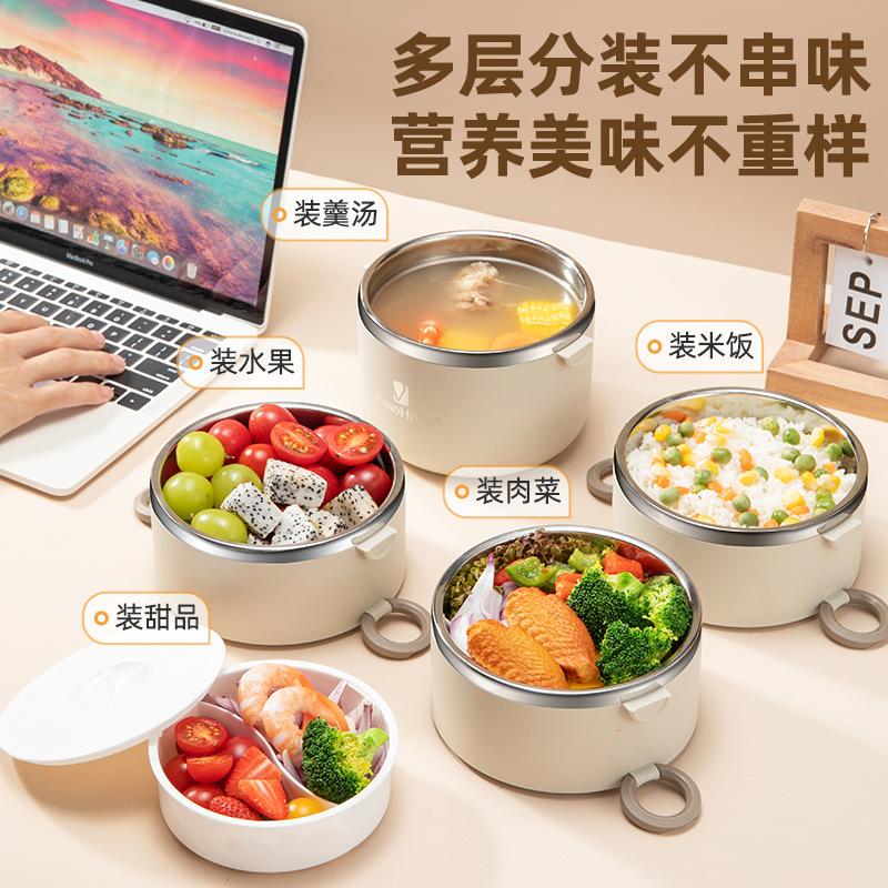 Hộp cơm trưa cách nhiệt tròn nhiều ngăn
